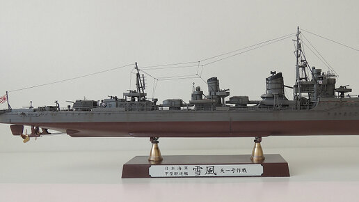 Моя первая "японская" модель, качеством доволен, кроме неприятно удививших башен ГК, на которых было жуткие швы от пресс-формы. Юкикадзэ (Юкикадзэ, Вьюга/Метель/Буран) — японский эсминец типа «Кагэро». Один из самых прославленных эсминцев японского флота и единственный эсминец этого типа, переживший войну. Ему принадлежит рекорд среди эсминцев японского флота по пройденному расстоянию — более 100 000 миль, к тому же «Юкикадзе» почти всю войну оставался неповрежденным...
