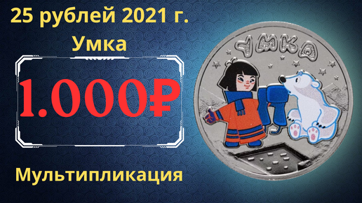 Цена монеты 25 рублей 2021 года. Умка. Цветное исполнение. Российская Федерация.