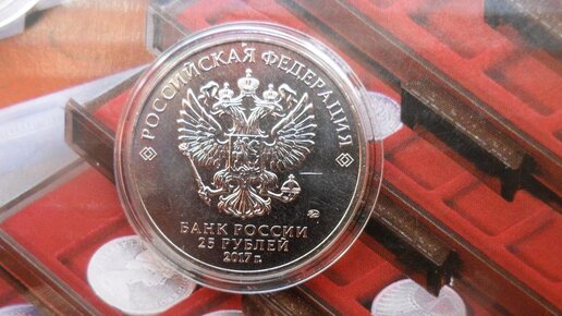 Пару лет назад, а именно в 2017 году Московский монетный двор выпускает кардинально новую серию монет - это советская мультипликация. Номинал для новой серии взяли двадцатипятирублевый. Вообще монеты номиналом 25 р. задумывались для оборотного хождения. Изначально ими хотели разбавить другие монетные номиналы, которые ходят у нас в обороте. И по моему это вполне логично, есть копейки (которые уже перестали чеканить), есть рубль, два, пять и десять рублей. 25 рублей - это сейчас самый большой номинал из недрагоценных монет...