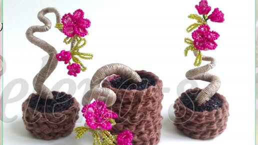 💖 Прекрасный вариант для подарка. Просто, быстро, оригинально и очень красиво. Размер этих бонсайчиков - около 10 см в высоту, вместе с горшочком. Как цветет 😉 настоящий миндаль: Мастер класс (листаем...