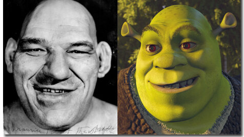 Может для некоторых это является и секретом, но многих персонажей известных нам мультфильмов рисовали с реально существовавших либо до сих пор существующих людей. Шрек же, успевший полюбиться широкой аудитории взрослых и детей, не исключение - он был срисован с реального человека. Морис Тийе, французский рестлер, родившийся в далёком 1903 году. В детстве он был совершенно обычным ребёнком, даже получил прозвище "Ангелок" за своё милое личико. Ходили слухи о том, что Морис мог изъясняться на нескольких языках, а также преуспевал в игре в шахматы и литературе...