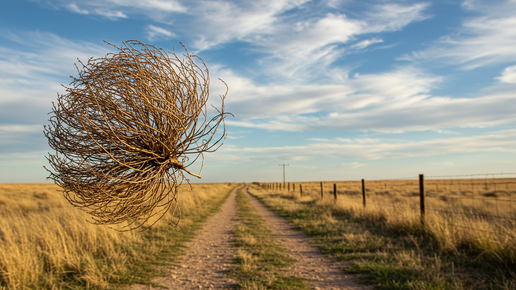 На своём пути перекати-поле обрастает соломой, мелкими веточками и мусором, превращаясь из одинокого стебля в увесистый ком. Обитает этот странник не только в кинематографических прериях Дикого Запада, но и в суровых просторах нашей Сибири, где его называют менее романтично — «катун». Несмотря на кажущуюся безобидность, перекати-поле может стать настоящей угрозой. Жители небольшого городка Кингман в Аризоне ежегодно сталкиваются с нашествием этих кустов-отшельников...
