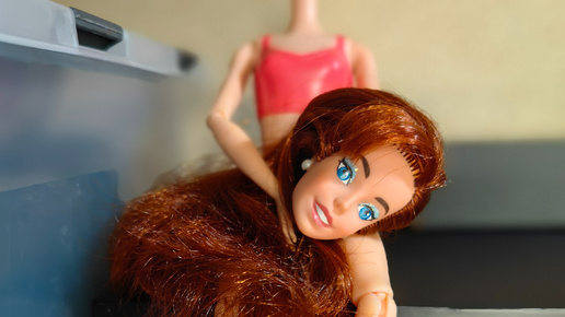 Увидев в продаже голову довольно редкой сейчас Анастасии (куколки, выпущенной по одноимённому мультфильму), я даже опомниться не успела, как оформила доставку. Тем более цена в 300 р. была более чем символическая. По фото продавца было видно, что есть выстриг чёлки. Масштаб потери волос был непонятен, оставалась слабая надежда, что восстановлю из общего объёма. По макияжу и серёжкам я предполагаю, что это Anastasia «Dream Waltz», 1997 года выпуска. В платье с "Призрачного бала". Похожий макияж есть у Анастасии на коньках, но у неё вроде бы нет серёжек и волосы короче...