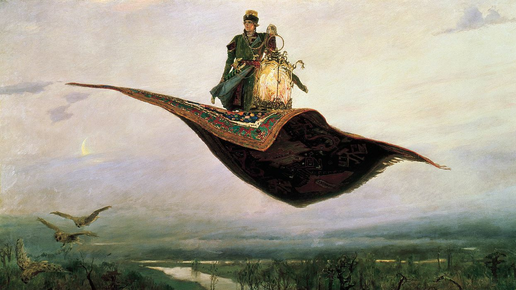 В сказках ковром-самолетом называют волшебный вид транспорта, на котором можно передвигаться по воздуху. Исследователи считают, что это фантастическое средство передвижения пришло в европейский и славянский фольклор с Востока. Например, его описания можно встретить в сборнике сказок и новелл «Тысяча и одна ночь». Ковер-самолет упоминают в «Сказке об Иване — гостином сыне», «Чудесной курице», «Рогах», «Вещем сне», «Заколдованной королевне», «Царевне-лягушке», «Елене Премудрой» и других русских сказках, народных и авторских...
