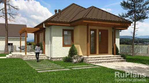 Представляю вашему вниманию маленький домик площадью всего 49.71 м2. В этом доме есть всё необходимое для постоянного проживания двух человек. Архитектура проста и незатейлива. На главном фасаде имеется выступ, где размещён тамбур...