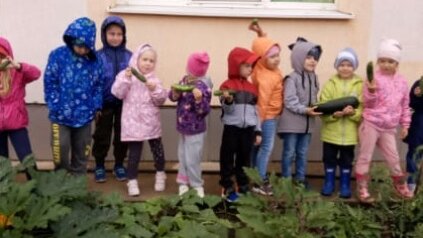 В детском саду, куда ходит мой внук, с южной солнечной стороны здания разбит небольшой огородик. На грядках выращиваются некоторые самые любимые всеми овощи. Есть также небольшая грядка клубники. Уже к середине июля в детском саду поспел неплохой урожай овощей. Что интересно: возможно из-за хорошей защиты огорода от холодных ветров, или благодаря отличному уходу за рассадой, но урожай на детсадовских грядках поспевает быстрее, чем в садах и огородах Екатеринбурга. Фотографии из детского сада мне пересылает дочь...