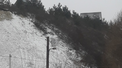Склон потихоньку осыпается, но несколько лет назад применили защиту, высадили для укрепления грунта сосны.