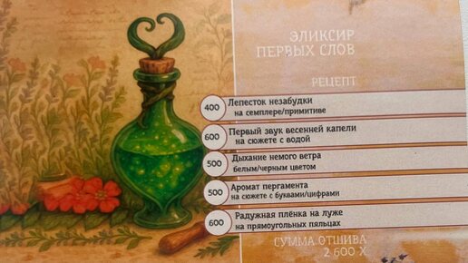 Наконец-то тот самый городской герой заглянул в лавку ведьмы. Как хорошо, что во время готовки зелья по рецепту слова не нужны!) Элексир первых слов Норма: 400х на семплере/примитиве