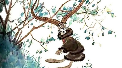Мансийская сказка Когда появились в лесу звери, был у них самым старшим большой зверь — лось. Однажды лось с женой своей на лесной полянке разговаривал. Заяц мимо бежал, разговор их услышал, остановился. Думает: «Послушаю-ка я, о чём они говорят». Подкрался поближе, спрятался за пенёк, слушает. — Вот, — говорит большой лось, — есть у меня рога, которые должен я раздать зверям. Но зверей много, а рогов мало. Кому же дать их? Слушает заяц, думает: «А не плохо бы и мне рога получить. Чем я хуже других?» — Кому вот эти рога дать? — спрашивает лось жену...