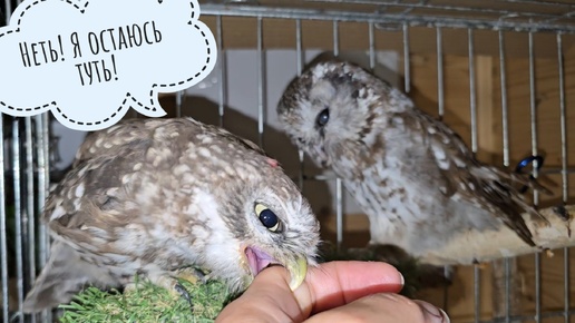 Маленькие милые совы: сыч Лучик в гостях у сыча Чучундрия. "Есть что-то вкусненькое?"