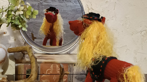 Коней перед новым годом не вяжет только ленивый. И я не исключение. Но мне хотелось создать авторскую игрушку. Сувенир, которого не будет у других. За вдохновением в таком случае я обращаюсь к картинкам из интернета. Мне понравился вот такой забавный конь. Узнаете мультфильм? "Раз ковбой, два ковбой" Мультик из детства. А вот мой ковбойский конь. Игрушка-талисман «Конь Огонь» — символ 2026 года! 🐎✨
