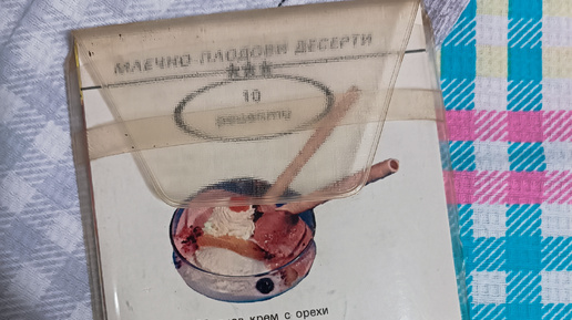 Сегодня очень необычный и интересный набор, и я очень рада вам его показать. Называется он "Млечно-плолови десерти". У него есть ряд особенностей, кроме названия, как вы поняли, первая особенность — это что он на болгарском языке. Вторая — вместо обложки здесь пластиковый конвертик. Третья. У него есть автор Илина Владимировна Димчева, у нее есть книги по кулинарии, так с соавтором Сашка Николова Кондова написана книга «Что готовить, когда мамы нет дома», в России книга вышла в 1990 году. Цена набора 1,45 лева, сейчас это 69,34, а сколько было в 1986 году не скажу даже...