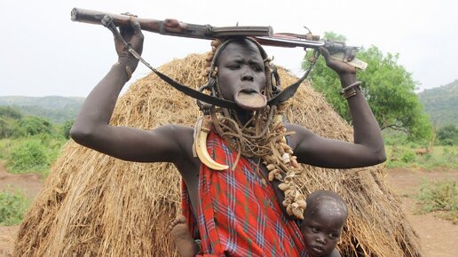 Племя мурси, проживающие в Эфиопии, отличается не только своим необычным видом, но и совершенно дикими обычаями.Женщины племени называют себя Жрицами Смерти. Почему? В племени царит матриархат и главная здесь - верховная жрица. Мужчины в племени выполняют второстепенную роль и чаще всего их функции заключаются в обеспечении продолжения рода и возможности содержать семью. Но главный смысл жизни мужчин племени мурси – удостоится чести умереть, так как по верованиям племени мурси, тело мужчин – это тюрьма для бога смерти Ямды, которому они все поклоняются...