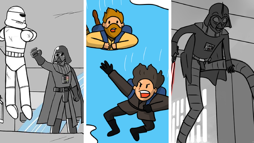 Пожалуй, самым известным персонажем саги «Звездные войны» является могучий ситх Дарт Вейдер - даже люди не знакомые с историей из далекой-далекой галактики, наверняка, слышали это имя. Среди художников комиксов также есть множество поклонников фантастического мира, созданного Джорджем Лукасом. Поэтому вполне закономерно, что в сети есть полно смешных зарисовок о культовом киноперсонаже. До того как стать могучим владыкой ситхов, бывшему джедаю Энакину Скайуокеру пришлось сразиться со своим учителем...