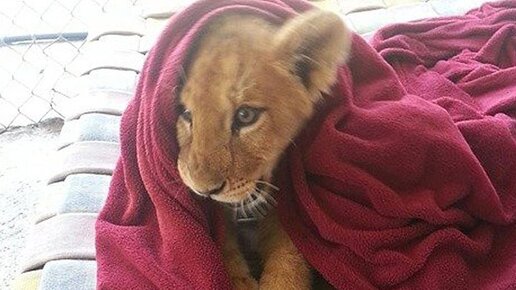 Спасли львенка, который спит только с одеялом. Лев вырос, а привычка осталась