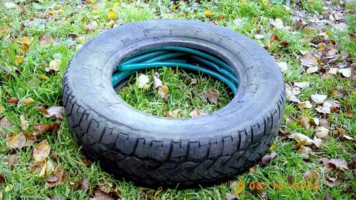 Просто покрышка. Очень удобно его в таком виде убирать на зиму. А когда нужен - не доставать из покрышки, замучаетесь потом распрямлять петли, а просто раскатать по дорожке...