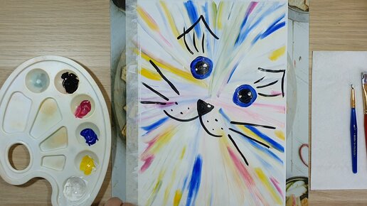 🎨 Радужный котик. Рисунок гуашью (для детей от 5 лет).