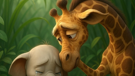 В далёком африканском саванне жил веселый и любопытный слонёнок по имени Хобус. Только вот была одна вещь, которую он ужасно стеснялся — его большой, длиннющий хобот. Другие животные смеялись над ним, говоря, что хобот выглядит странно и нелепо. От этих шуток слонёнок прятался в заросли подальше от всех и много времени проводил один. Однажды утром, гуляя по берегу реки, Хобус встретил старого мудрого жирафа Грачо. — Эй, почему ты такой грустный? Расскажи дедушке Грачо, что случилось?, - попросил жираф...