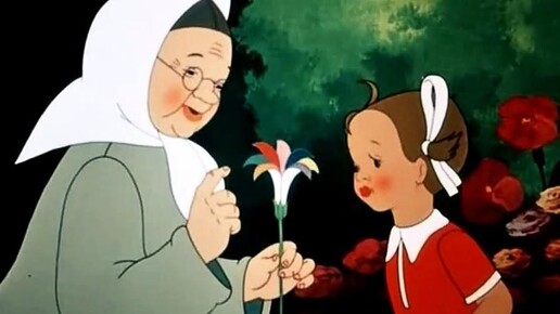 Цветик-семицветик (1948г. 19 мин.) По одноимённой сказке (1940) Валентина Катаева. 1949г. IV Международный Кинофестиваль в Марианске-Лазне (ЧССР) — Премия за лучший фильм для детей. Фильм говорит о том, что наши желания могут быть незначительными, не приносить пользы людям, миру, быть чисто эгоистическими – как оторванные шесть лепестков девочкой Женей, которые в результате не принесли ей радости. В конце фильма бабушка-волшебница говорит, что Женя этих шесть волшебных лепестков потратила зря....