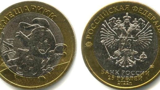 25 рублей 2022 года «Смешарики». (Ошибка даты в монете – 2022г. вместо официальной даты выпуска – 2023г. Биметаллическое исполнение)