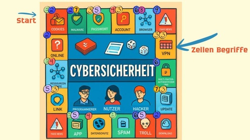 Ein "Monopoly"-basiertes Brettspiel mit einem Schwerpunkt auf Deutsch lernen und Cybersicherheit ist eine großartige Idee! Hier ist das Konzept eines solchen Spiels: