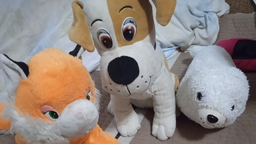 Про своих и не только кошек, собак и других четвероногих рассказала, а про дочкиных-то - забыла! Исправляюсь! Особенно если учесть, что кукол ребенок не любит, мягких игрушек у нее много. Лисичку зовут Наташка. Ее подарила двоюродная сестра Амина. Собаку Бульку подарила моя сестра, когда был год собаки, моему сыну. То есть она жила с нами еще до рождения дочки. Кличку Булька собачка получила после просмотра мультфильма Булькины подсказки для всех. Огромного зайца дочка получила в подарок от своей...