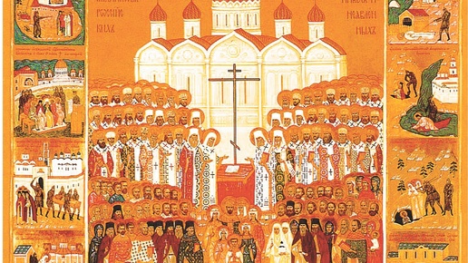 Икона «Собор Новомучеников и Исповедников Церкви Русской» написанная для Юбилейного Архиерейского Собора Русской Православной Церкви 2000 года. В общий список вошли более 1200 Новомучеников и Исповедников, как те, кого успели канонизировать ранее или почитали как святых только в отдельных местностях, так и более 800 новых имен. 1. В центре Собора новомучеников и исповедников — семья царственных страстотерпцев: российский император Николай II, его супруга Александра Федоровна, дочери Ольга, Татьяна, Мария, Анастасия и сын, цесаревич Алексей...