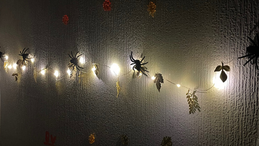 Всем привет-привет 😊😊😊 Пару дней назад мы с младшей дочкой сходили в магазин — купить ей тоже украшения для Хэллоуина. Она обалдела, когда увидела, какую «страшную красоту» навела в своей половине комнаты старшая сестра, и тоже захотела себе обновки. Я выделила ей тысячу и пошли её тратить)). Она выбрала себе радужную пружинку, набор пауков, обруч для головы с цветами и черепами, набор осенних пластиковых цветов, махровую тыковку в шляпе и гирлянду с листиками, а также просто пластиковые листья...