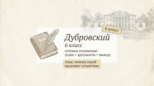 Тема: почему Владимир Дубровский вызывает сочувствие в романе А. С. Пушкина «Дубровский». Внутри: готовый план, 3 аргумента по тексту, пример вступления и вывод. На чтение 4–6 минут. О чём писать в этом сочинении. Нужно показать не пересказ сюжета, а причины, почему читатель сочувствует Дубровскому: он теряет дом и отца из-за несправедливости, он вынужден менять жизнь и идти на опасный путь, он остаётся человеком, несмотря на боль и желание мстить. План сочинения 1) Вступление: о чём роман и...