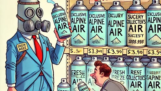 Если ты думаешь, что воздух бесплатен – ты ошибаешься. Уже давно продают воздух в банках, и самое смешное – люди реально его покупают! Нет, это не шутка. Буквально – баночка "чистого альпийского" или "парижского" воздуха может стоить как ужин в хорошем ресторане. Гениальный бизнес – ноль затрат, максимум прибыли! Ты не обязан повторять сюжет из мультик где вырубали лес и продавали воздух, чтобы зарабатывать на пустоте. В современном мире продаются не только товары, но и эмоции, статус, иллюзия успеха...