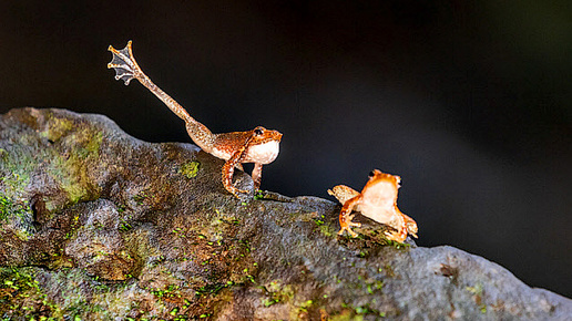 Привет, мои дорогие любители необычной земной фауны. Сегодня мы перенесёмся в тропические леса, где дождь — это голос, а мох покрывает всё, даже тишину. Там, в тенистых оврагах Западных Гат (это в Индии), происходит брачный ритуал, в котором главную роль играет не голос, а танец. Маленький лягушонок поднимается на камень — и начинает отбивать ритм ногой. Да-да, именно ногой. Он не поёт, не квакает, не дерётся. Он танцует. Иногда — даже обеими ногами по очереди. Это не сказка, не мультик, и не индийское кино...