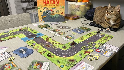 📌 Сыграл и делюсь впечатлениями о настольной игре "Жми на Газ". Это "детская" кровожадная гонка, в которой не все доедут до финиша. Более того, не все останутся друзьями после партии. Игра позиционируется, как семейная - мультяшный стиль оформления, веселое название. Но на самом деле, это гонки на выживание, в которых нет места сантиментам. Если вы любите "Манчкин", то «Жми на газ» вам точно зайдет! Что у нас есть: Ход игры В игре сразу все начинают "топить" всех. Тк для пакостей нет ограничения на расстояние на трассе , то особенно больно достается лидеру...
