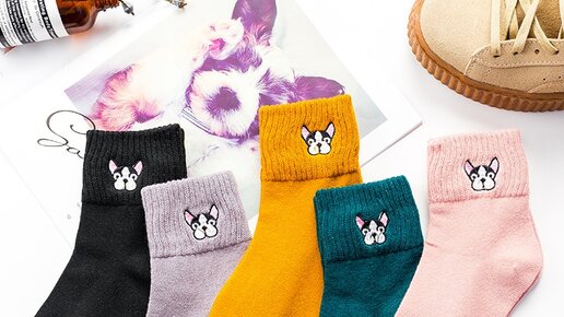 5 пар японских харадзюку мультфильмов вышивка собака счастливые носки женские улица скейтборд милые носки женские дышащие с Алиэкспресс - цена 11,00$, купить: https://is.gd/0RMjFl Женские носки