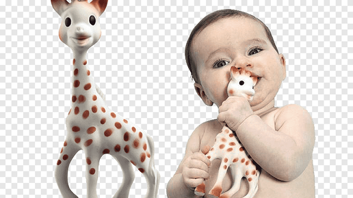 Когда у ребёнка режутся зубы, он тянет в рот всякую гадость - не только чтобы попробовать на вкус, но и чтобы почесать дёсны. Зная это, родители подсовывают то, что можно кусать и жевать, без последствий. Раньше в аптеках даже продавались специальные эластичные "бублики", которые потом трансформировались в самые причудливые игрушки - специально на такой случай. И вот как раз одно такое изделие даже получило своё собственное эпонимическое название - ЖИРАФ СОФИ. Правда, распространено оно, преимущественно, во Франции, но ведь культура не знает границ...