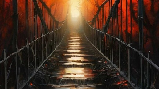 Представьте себе это не обычный деревянный или каменный мост. Калинов Мост – это огненный мост, пылающий, раскаленный добела, перекинутый через огненную реку Смородину (или Пучай-реку). Эта река – не просто водный поток, а граница между миром живых и миром мертвых, или, как вариант, между миром людей и миром нечистой силы...