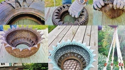 Люди обычно выбрасывают на свалку старые использованные покрышки от колёс автомобилей и тракторов, однако им можно дать вторую жизнь, проявив фантазию и приложив небольшое усилие и терпение. Есть много идей на счёт того что можно сделать из покрышек, начиная от вырезания фигур до плинтусов и лестниц. Сегодняшней идеей будут клумбы. Для этого на покрышке нужно начертить узор в виде волнистых линий или зигзагов. Придётся немножко потрудиться. Отрезанную часть необходимо убрать, а сам узор вывернуть...