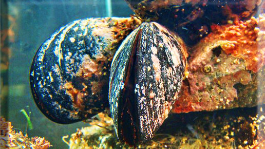 Все знают что такое мидии? Это такие очень вкусные двустворчатые моллюски. Растут практически во всех уголках земного шара, правда, в каждом - свой особенный вид. Выверт эволюции здесь вот в чем: мидии, как и все двустворчатые моллюски, почти лишились головы, стали этаким куском мяса в раковине. От подвижной и деятельной формы жизни они эволюционировали (или деградировали, как посмотреть) к упрощенному оседлому состоянию. Мидия - это живой фильтр воды. Накидайте мидий в грязную морскую воду - и очень скоро она станет кристально чистой...