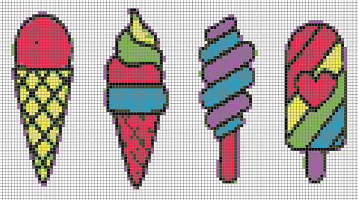 Схемы для вышивки и интарсии: пирожное, мороженое, конфеты и другие сласти