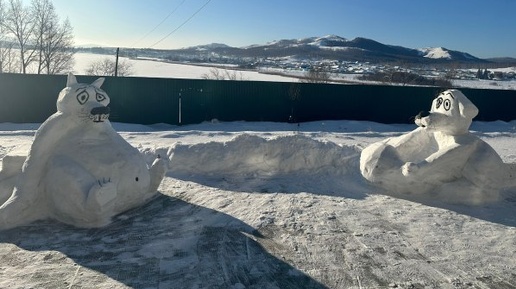 Директор школы номер 7 села Миндяк Камиль Шугаюпов во дворе учреждения создал из снега узнаваемые фигуры из мультфильма «Жил-был пес