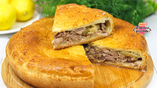 Вкуснейший пирог с мясом и картошкой в духовке (Невероятное тесто!)