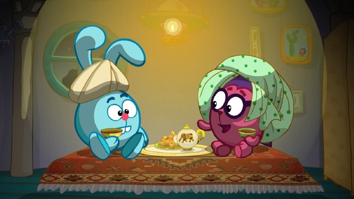 Сюжет серии: Крош приходит в гости к Ёжику и видит его сидящим посреди комнаты в чалме с какой-то книгой, да ещё и на парящем в воздухе ковре. Крош говорит ему "привет Ежидзе", но тот в ответ заявляет, что он не Ежидзе, а Ежик Джинн и исполняет любые желания. Он рассказывает кролику, что читал книгу про джиннов, а Крош замечает, что ковер-то не в воздухе висит, а лежит на столе. Ежик тем временем говорит, что джинн из лампы может исполнять любые желания. Крош говорит, что он бы много всего загадал...