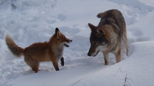 Повыбросила всю рыбу и сама потихоньку ушла. Дед приехал домой и зовёт бабу: - Ну, старуха, знатный воротник привёз тебе на шубу! Подошла баба к возу: нет на возу ни воротника, ни рыбы. И начала она старика ругать: - Ах ты такой-сякой, ещё вздумал меня обманывать! Тут дед смекнул, что лисичка-то была не мёртвая. Погоревал, погоревал, да что ты будешь делать! А лисица тем временем собрала на дороге всю рыбу в кучку села и ест. Приходит к ней волк: - Здравствуй, кумушка, хлеб да соль...