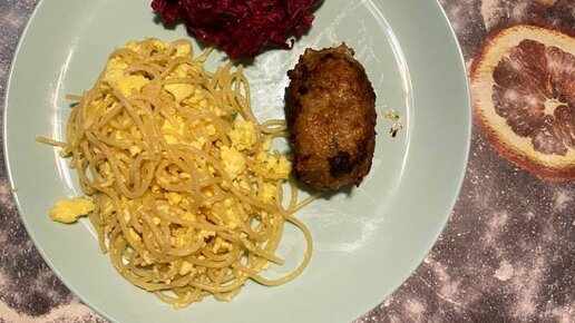 Котлетки по-домашнему с макарошками и свекольным салатиком🥑😍
