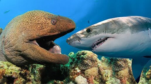 Сегодня мы расскажем о муренах, а также узнаем на что они способны в схватке с другими морскими обитателями. Мурены относятся к семейству угрей и широко известны своей необычной внешностью и агрессивным поведением. По своей природе они являются хищниками и имеют много схожих черт со змеями, например, обладая мощным телом, позволяющим не только удобно передвигаться в воде, но и прятаться в узких норах и расщелинах скал. Их внешний вид нагоняет страх - огромная пасть, крошечные глаза, слегка приплюснутое тело...