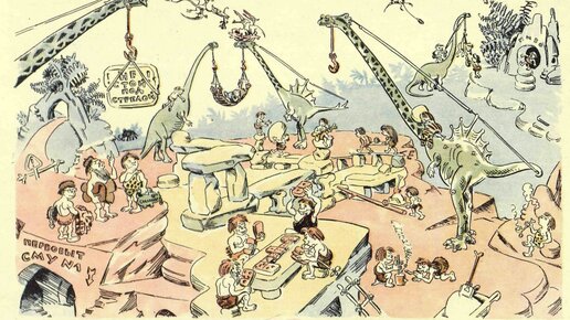 Привет, друзья! В эфире Канала Карикатур разрезка! Так мы называем большие, сложные картинки с множеством деталей и персонажей, которые я не просто разрезаю, а еще и увеличиваю, чтобы было лучше видно. Чтобы лучше понять эту картинку, нужно учесть контекст времени. Год у нас тут 1961: началась великая хрущевская стройка. Вся страна переселялась из коммуналок в тесные, низенькие, зато свои-свои квартиры. Исчезали проекты с красивыми арками, рельефами, скульптурами. Все становилось проще, возможно становилось неинтересным, зато таким вожделенным...