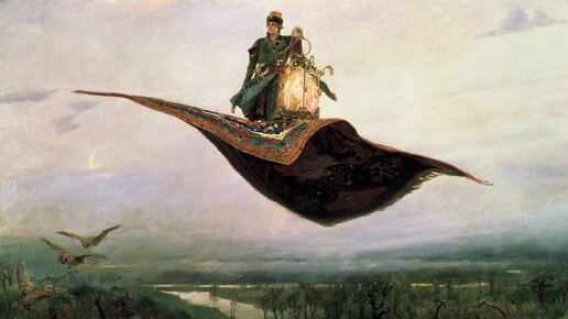 Пока на самолетах вы никуда не улетите, можно изучить сказочные способы перемещений. Вы узнаете, на чем можно полететь спасать мир, а затем геройски улетать в закат. Способ первый: Аграба, джины, ковер-самолет По легендам, этот чудо-коврик для путешествий над землей и водой соткали джины из шелков и золота по приказу царя Соломона. И на этом необычном транспортном средстве могли легко разместиться и царь на троне, и придворные, и личная гвардия. А скорость перемещения у него была невероятной! Не ковер-самолет, а буквально секретное оружие...