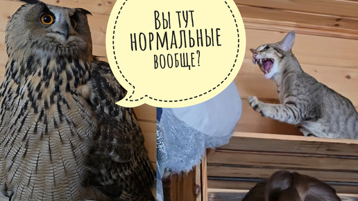 Сова филин Ёль и Треугольный кот Марсель впервые друг друга видят.Что там с анализами у глистов Куба