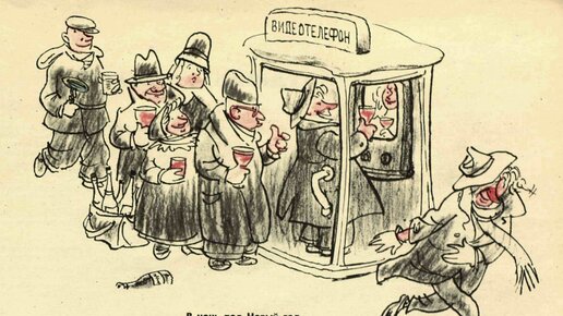 Красотки-болтушки, замерзший Дед мороз, видеофон в 1961: карикатуры про телефонную будку