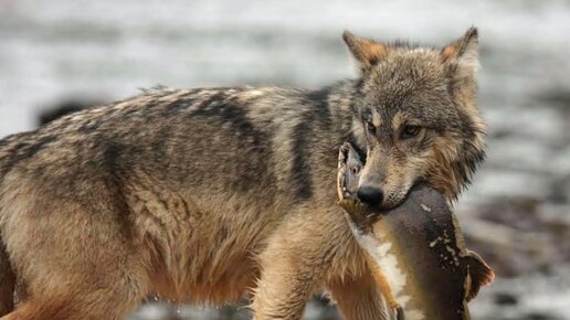 Волки начали ловить пресноводную рыбу. Уникальное видео!