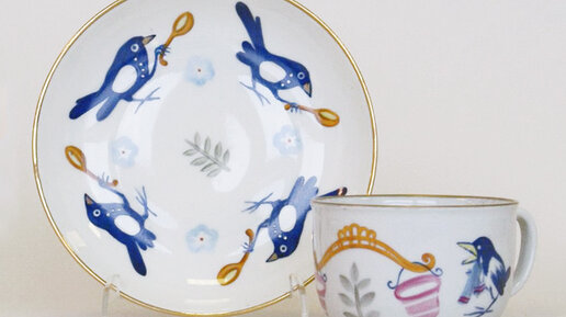 Из какого-то далёкого детства я вспомнила вермешельки на дней этой тарелки :) А оказывается, это целый детский набор «Сорока-белобока». Сорока-белобока кашку варила, деток кормила. А детки уже с ложками ждут :)